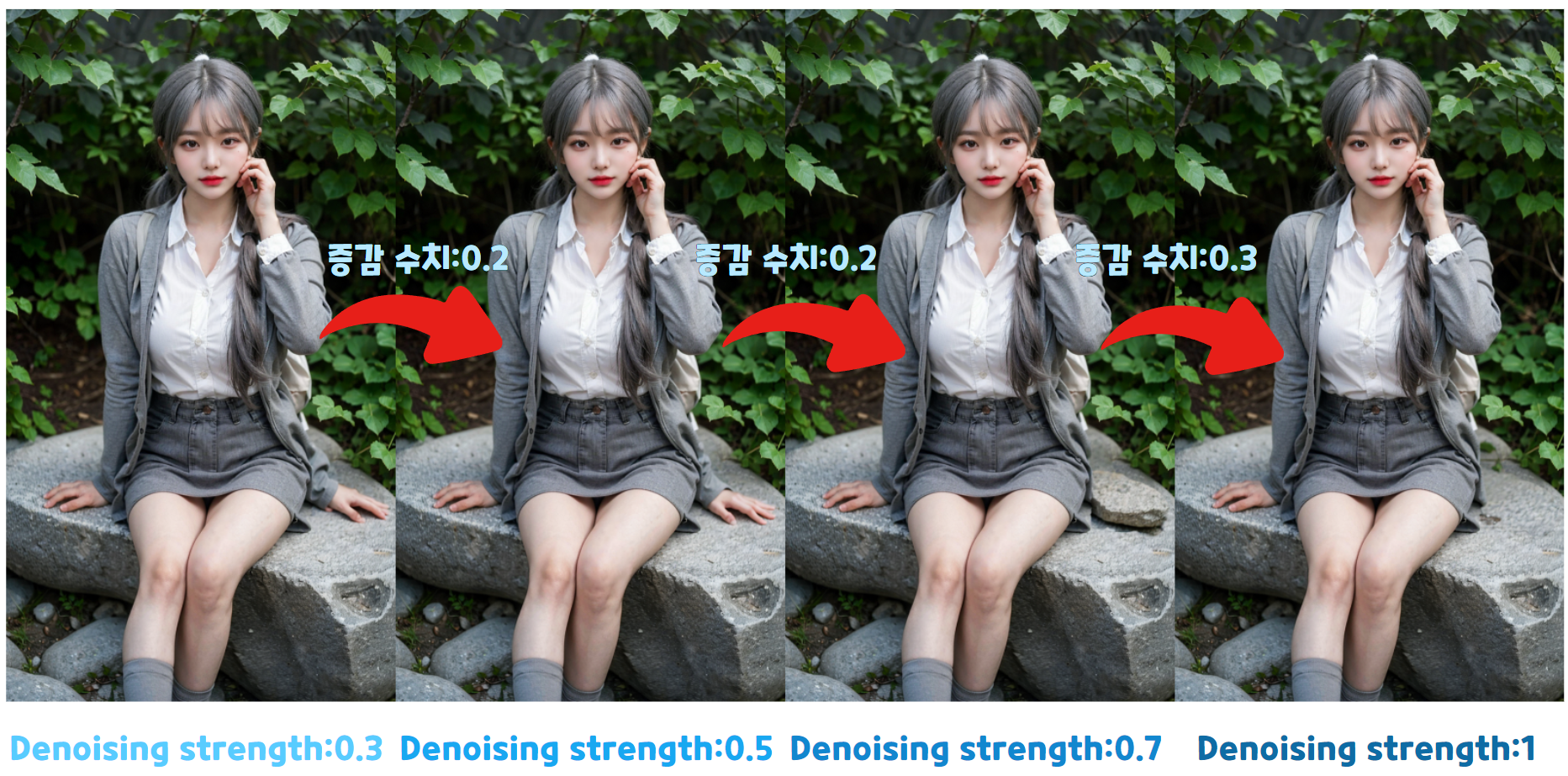 다만 Denoising strength 는 이 기능의 핵심이기 때문에 다시 한번 설명드리겠습니다.