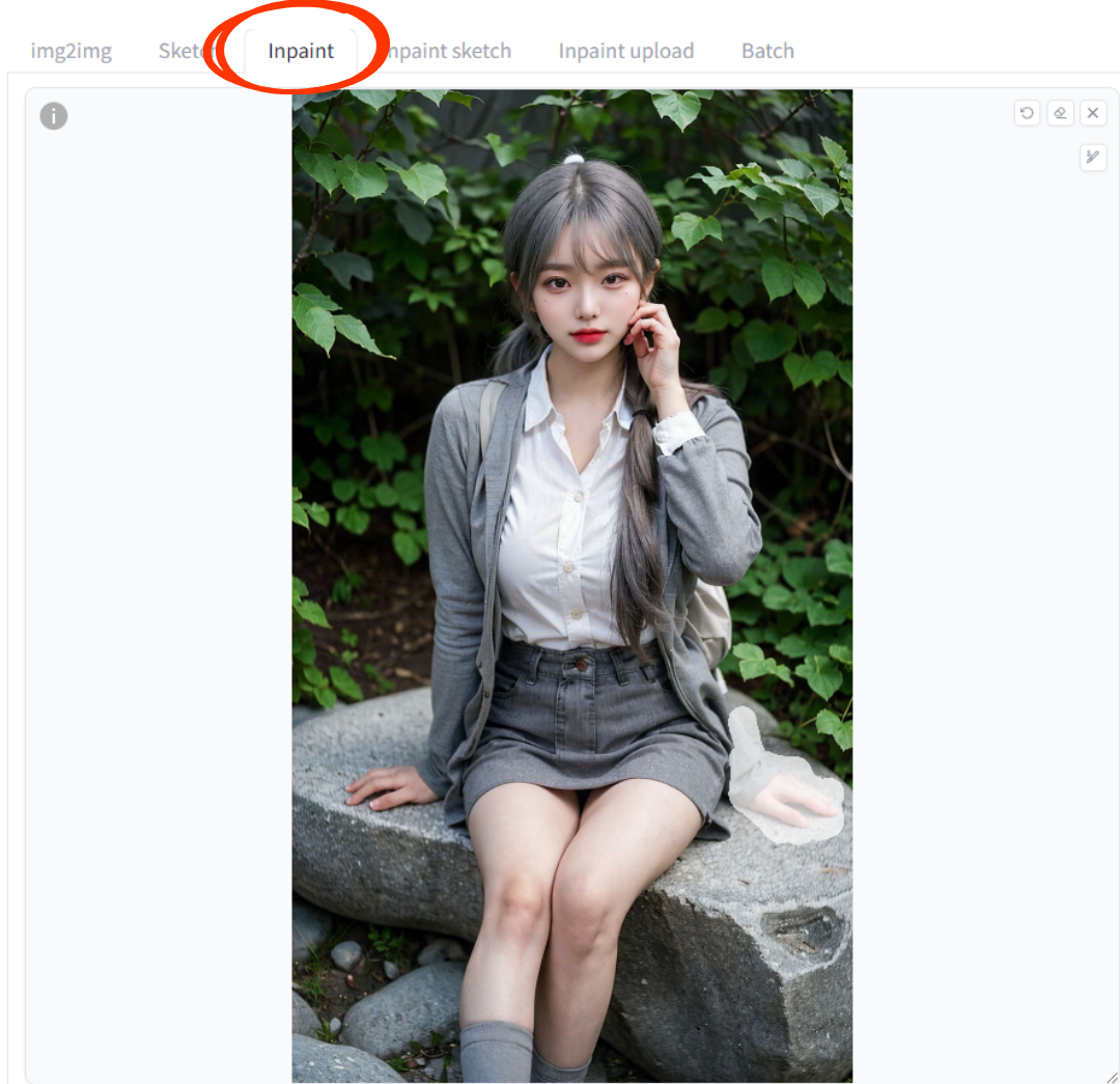 1.먼저 img2img 메뉴에 Inpaint 탭을 활성화 시키고,