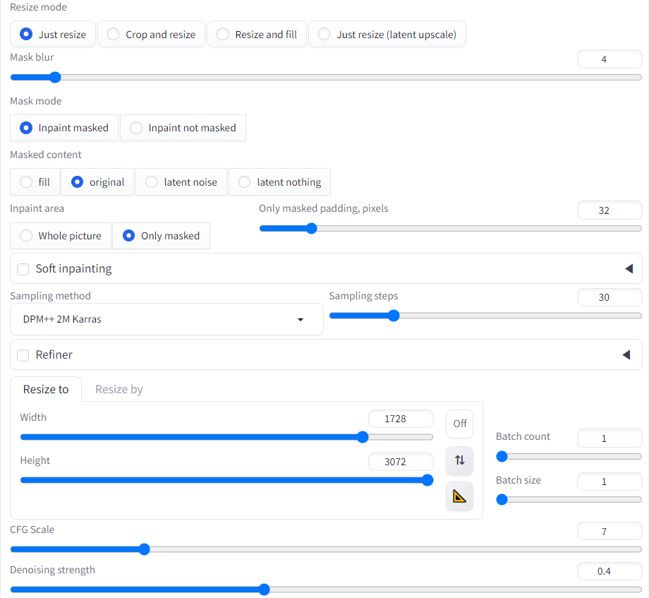 따라서 보통 0.4~0.5정도의 Denoising strength로 반복해서 생성하는 과정을 통해