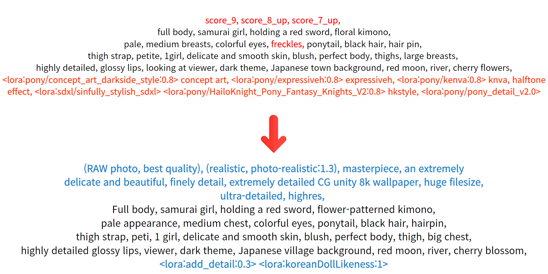 그리고 실사화 작업에 필요없는 로라 프롬프트를 제거하고,