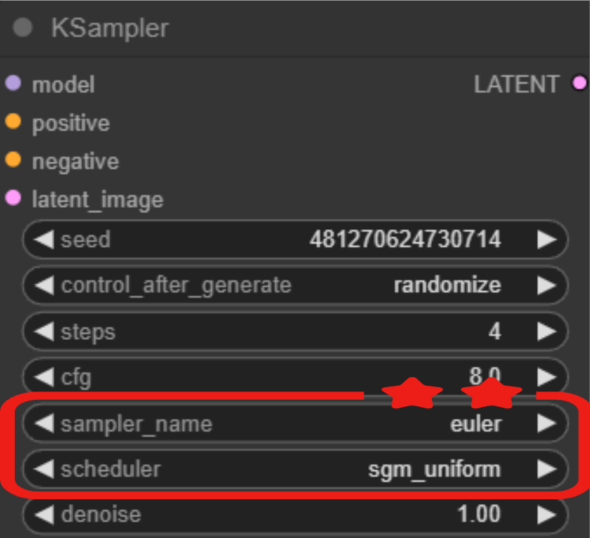 Euler 샘플링 모델과 sgm_unifrom 스케줄러를 사용하라고 하네요.