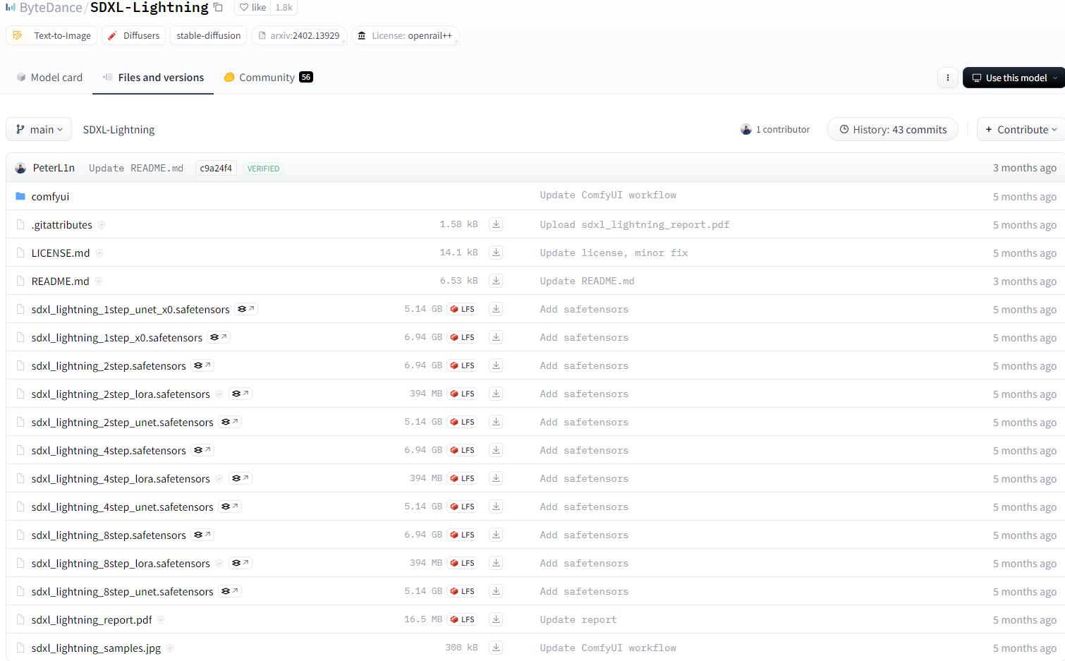 먼저 SDXL_ Lightning 모델의 설치 페이지 URL을 안내드리겠습니다.