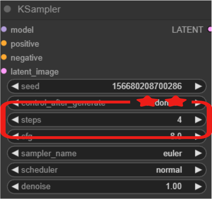 Ksampler의 steps 값을 체크포인트와 동일한 '4'로 바꿔주셔야 합니다.