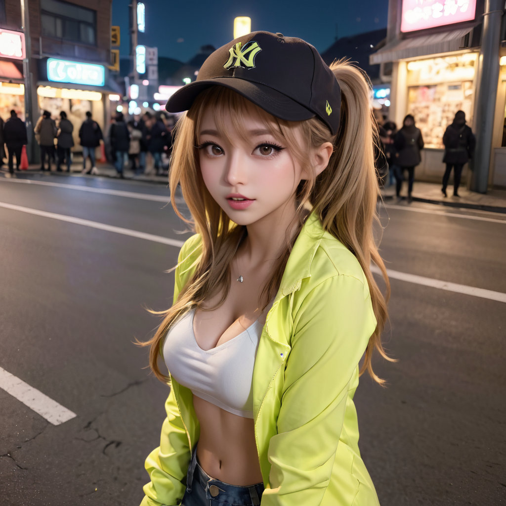 프롬프트는 간단하게 아름다운 여성, 그리고 핑크 네온 라이트로 작성해 주었습니다.