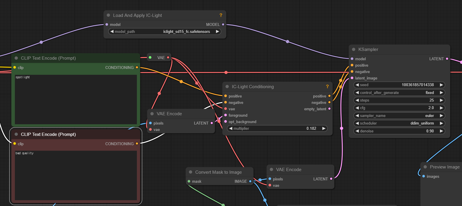 프롬프트 노드와 연결된 IC-Light Conditioning노드를 살펴보겠습니다.