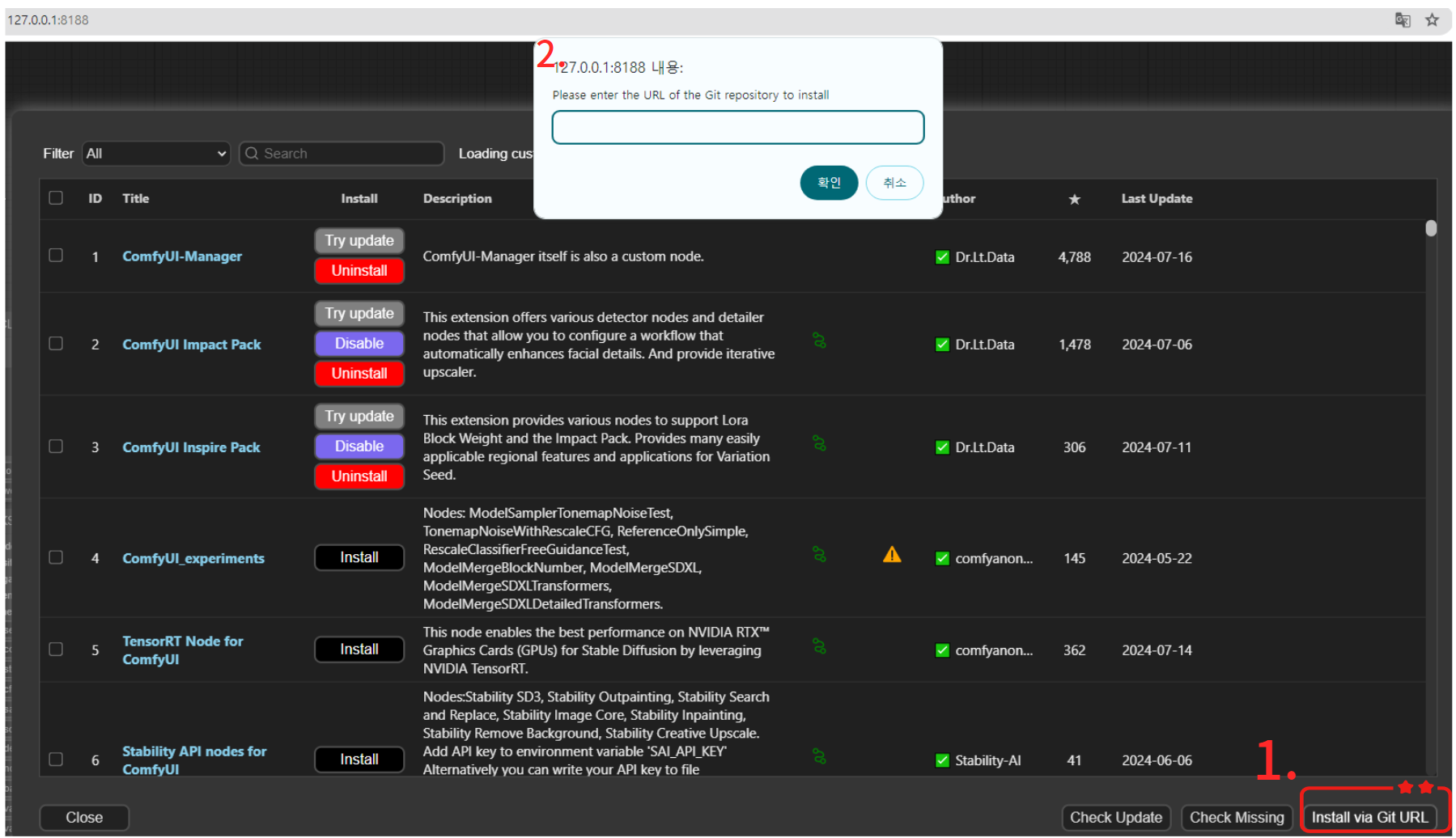 ComfyUI-manager -> Custom Nodes manager를 통해서 설치를 진행해주세요!