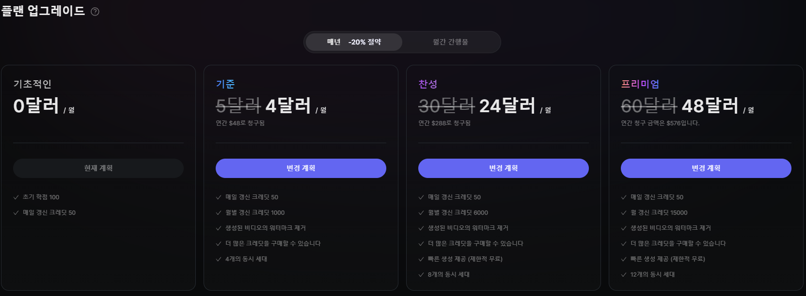 무료버전을 통해 충분히 영상화 프롬프트를 익히시고,